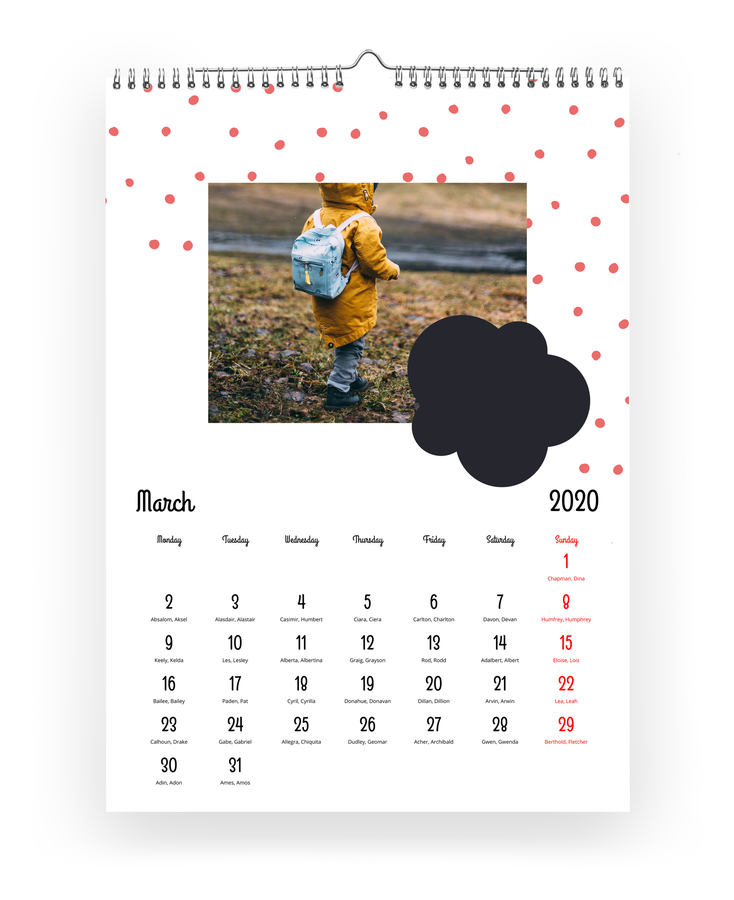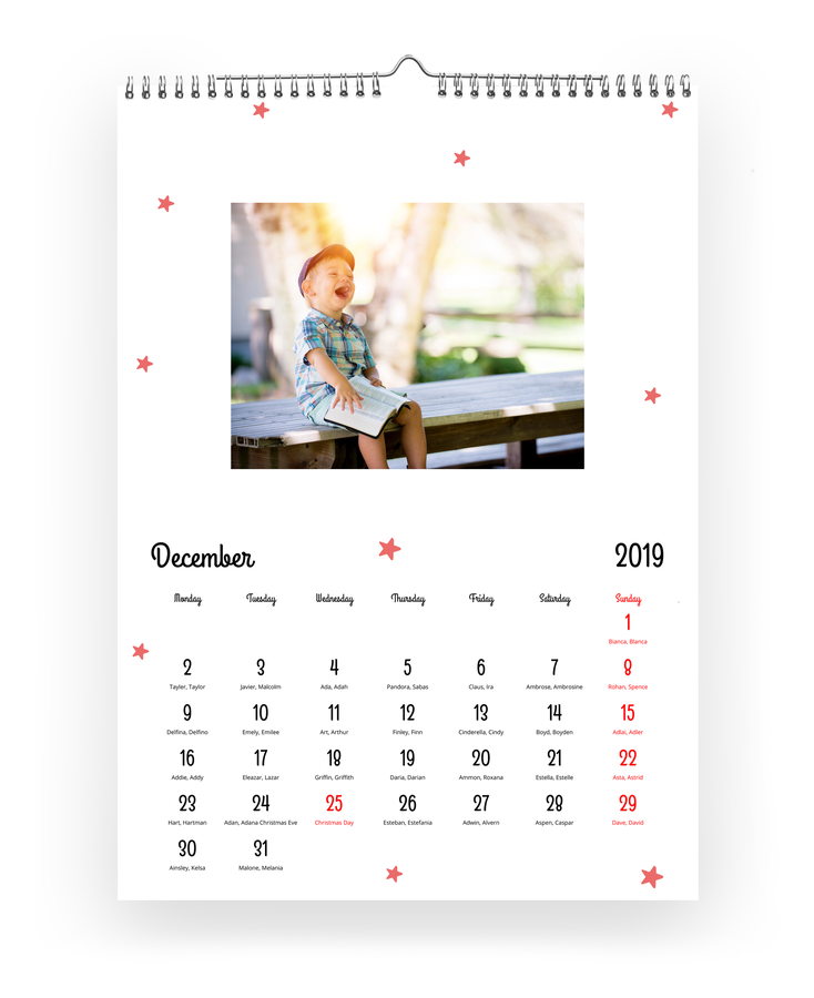 Hozd létre saját naptárad: adj hozzá születésnapokat, évfordulókat és ünnepeket, kedvenc fotóid, és kezdd a tetszőlegesen választott hónappal. Naptárainkat kiváló minőségű papírra nyomtatjuk, és erős spirálkötéssel vannak ellátva.