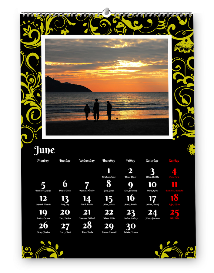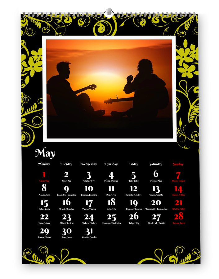 Hozd létre saját naptárad: adj hozzá születésnapokat, évfordulókat és ünnepeket, kedvenc fotóid, és kezdd a tetszőlegesen választott hónappal. Naptárainkat kiváló minőségű papírra nyomtatjuk, és erős spirálkötéssel vannak ellátva.