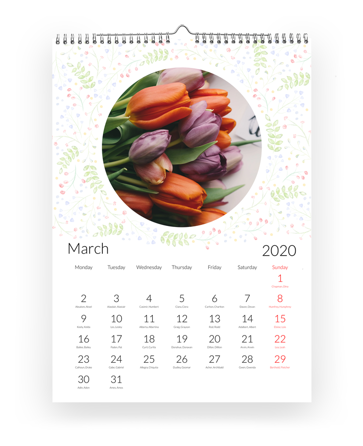 Hozd létre saját naptárad: adj hozzá születésnapokat, évfordulókat és ünnepeket, kedvenc fotóid, és kezdd a tetszőlegesen választott hónappal. Naptárainkat kiváló minőségű papírra nyomtatjuk, és erős spirálkötéssel vannak ellátva.