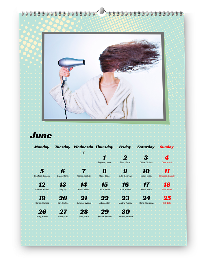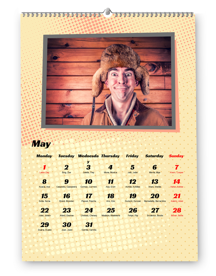 Hozd létre saját naptárad: adj hozzá születésnapokat, évfordulókat és ünnepeket, kedvenc fotóid, és kezdd a tetszőlegesen választott hónappal. Naptárainkat kiváló minőségű papírra nyomtatjuk, és erős spirálkötéssel vannak ellátva.