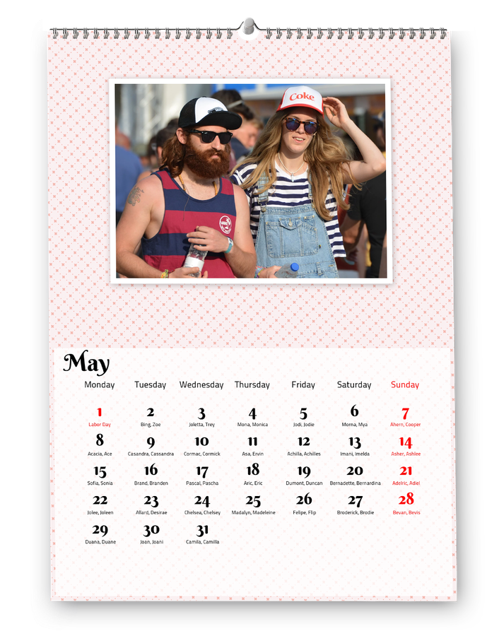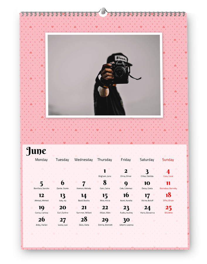 Hozd létre saját naptárad: adj hozzá születésnapokat, évfordulókat és ünnepeket, kedvenc fotóid, és kezdd a tetszőlegesen választott hónappal. Naptárainkat kiváló minőségű papírra nyomtatjuk, és erős spirálkötéssel vannak ellátva.