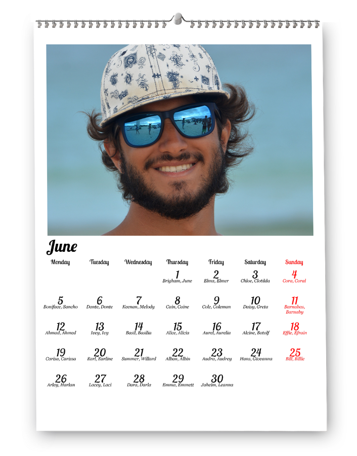 Hozd létre saját naptárad: adj hozzá születésnapokat, évfordulókat és ünnepeket, kedvenc fotóid, és kezdd a tetszőlegesen választott hónappal. Naptárainkat kiváló minőségű papírra nyomtatjuk, és erős spirálkötéssel vannak ellátva.