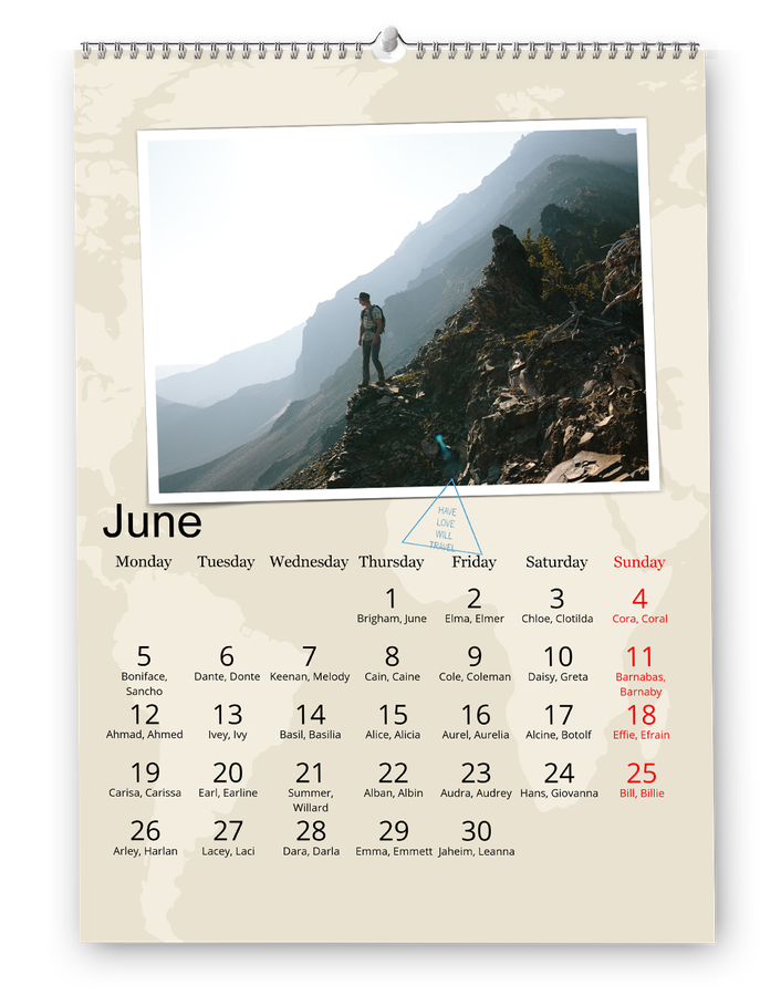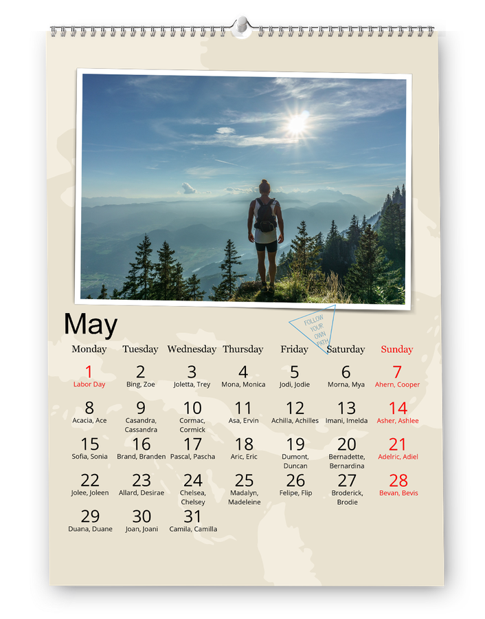 Hozd létre saját naptárad: adj hozzá születésnapokat, évfordulókat és ünnepeket, kedvenc fotóid, és kezdd a tetszőlegesen választott hónappal. Naptárainkat kiváló minőségű papírra nyomtatjuk, és erős spirálkötéssel vannak ellátva.