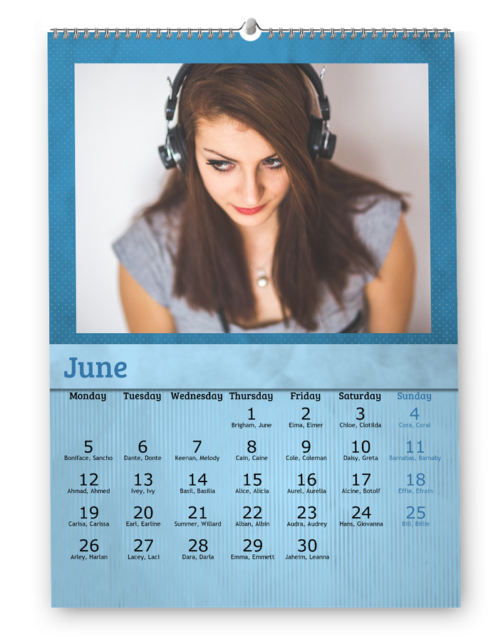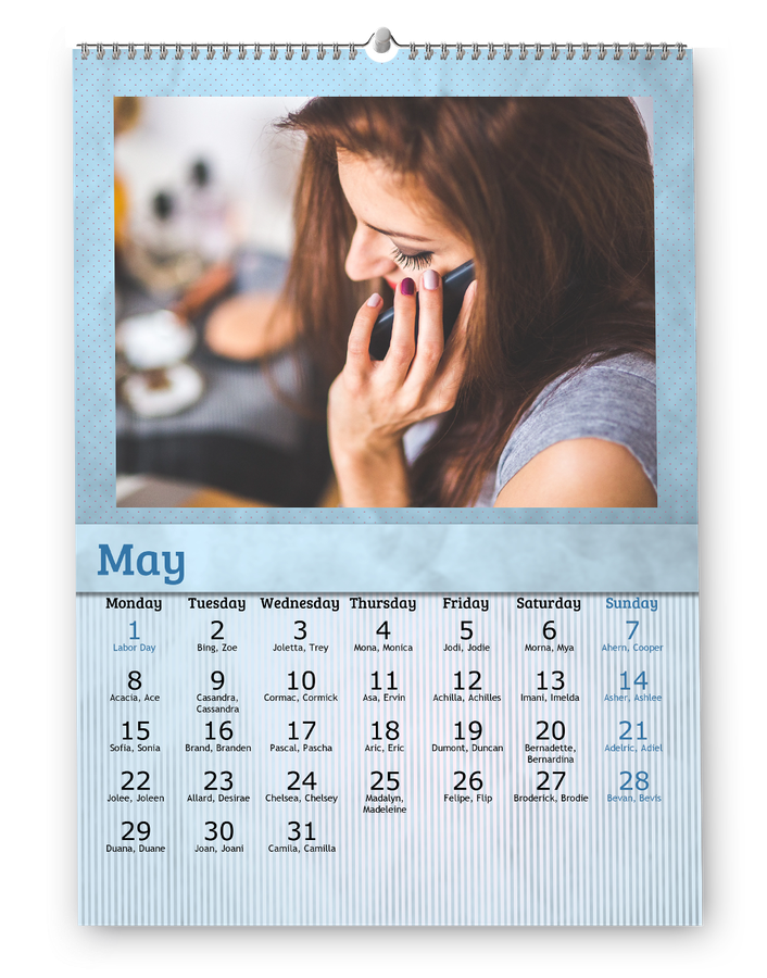 Hozd létre saját naptárad: adj hozzá születésnapokat, évfordulókat és ünnepeket, kedvenc fotóid, és kezdd a tetszőlegesen választott hónappal. Naptárainkat kiváló minőségű papírra nyomtatjuk, és erős spirálkötéssel vannak ellátva.