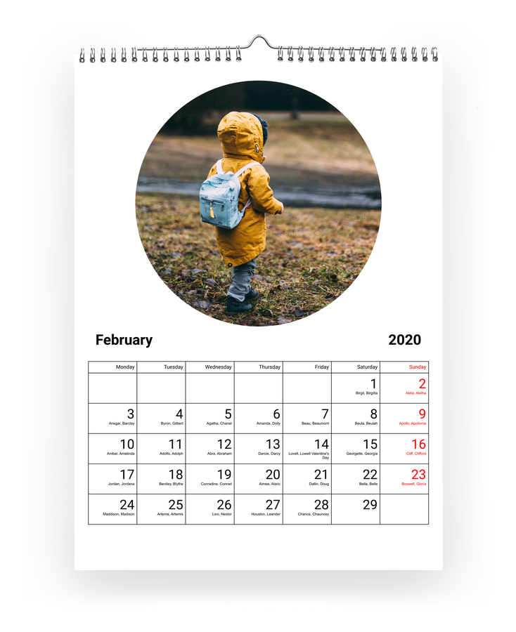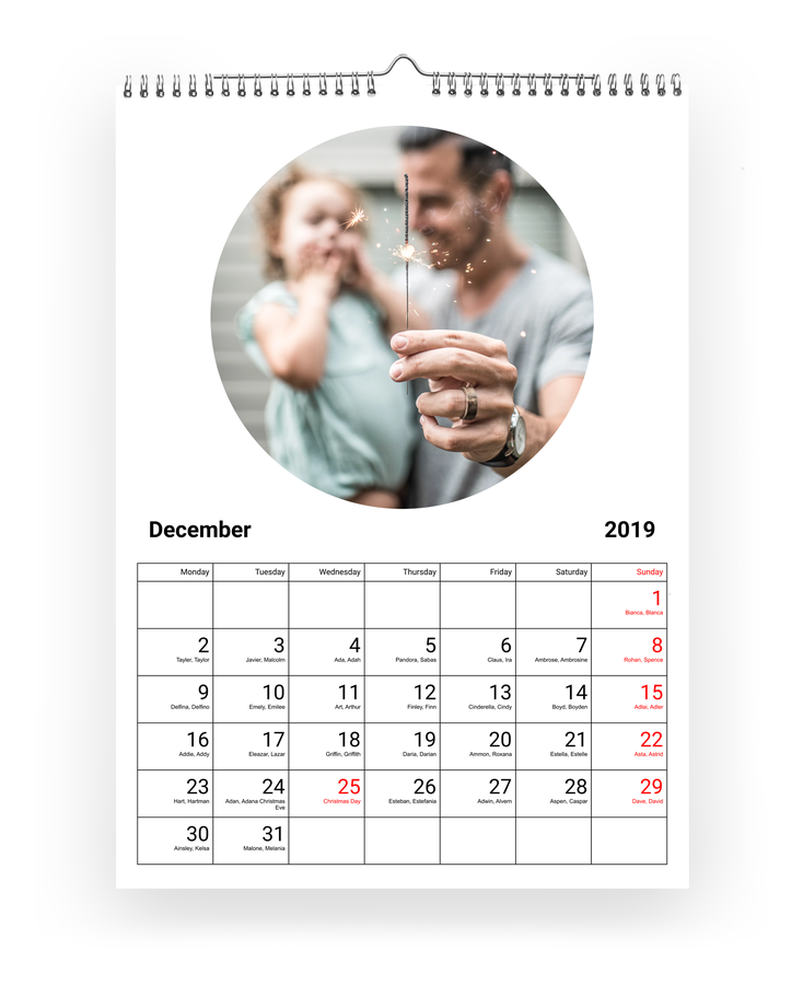 Hozd létre saját naptárad: adj hozzá születésnapokat, évfordulókat és ünnepeket, kedvenc fotóid, és kezdd a tetszőlegesen választott hónappal. Naptárainkat kiváló minőségű papírra nyomtatjuk, és erős spirálkötéssel vannak ellátva.