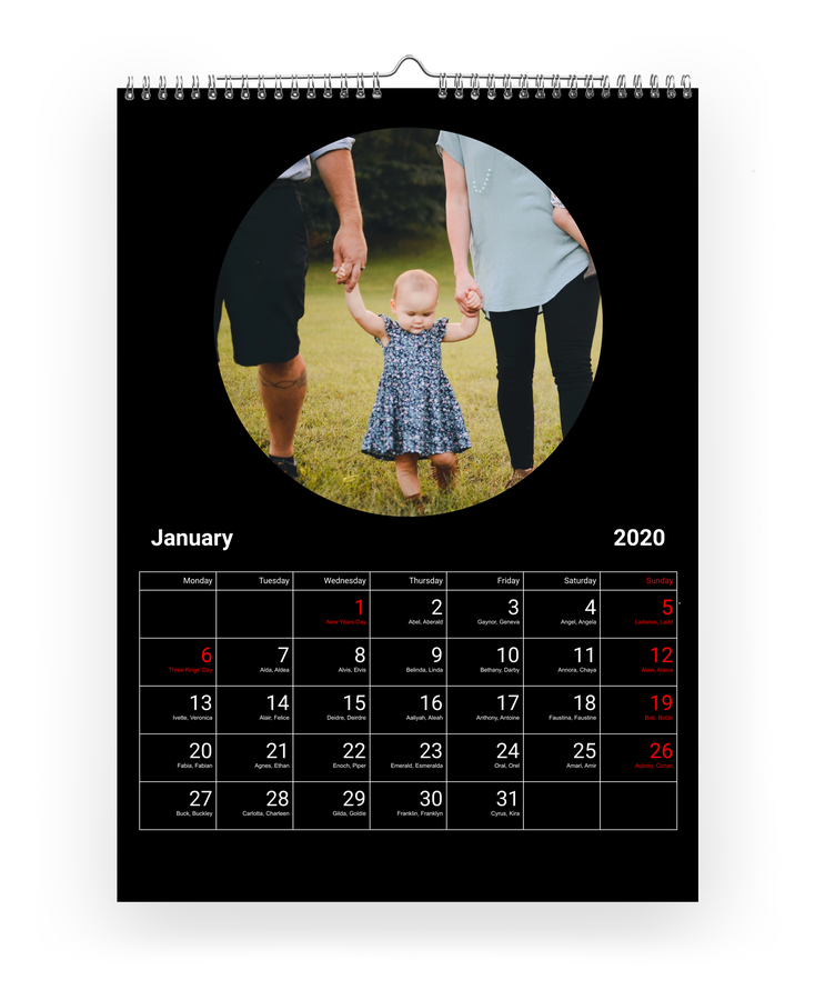 Hozd létre saját naptárad: adj hozzá születésnapokat, évfordulókat és ünnepeket, kedvenc fotóid, és kezdd a tetszőlegesen választott hónappal. Naptárainkat kiváló minőségű papírra nyomtatjuk, és erős spirálkötéssel vannak ellátva.