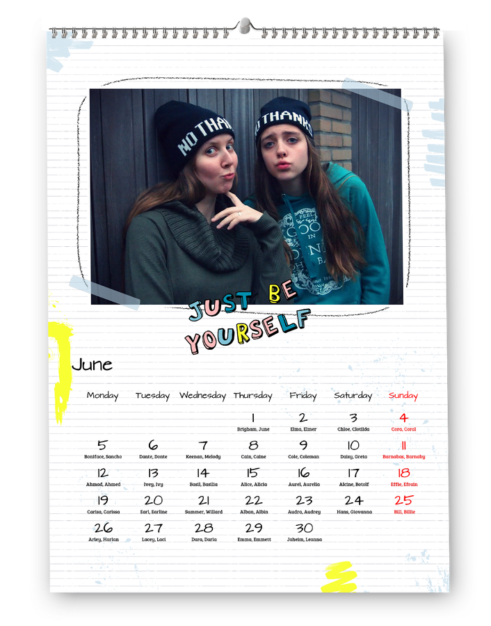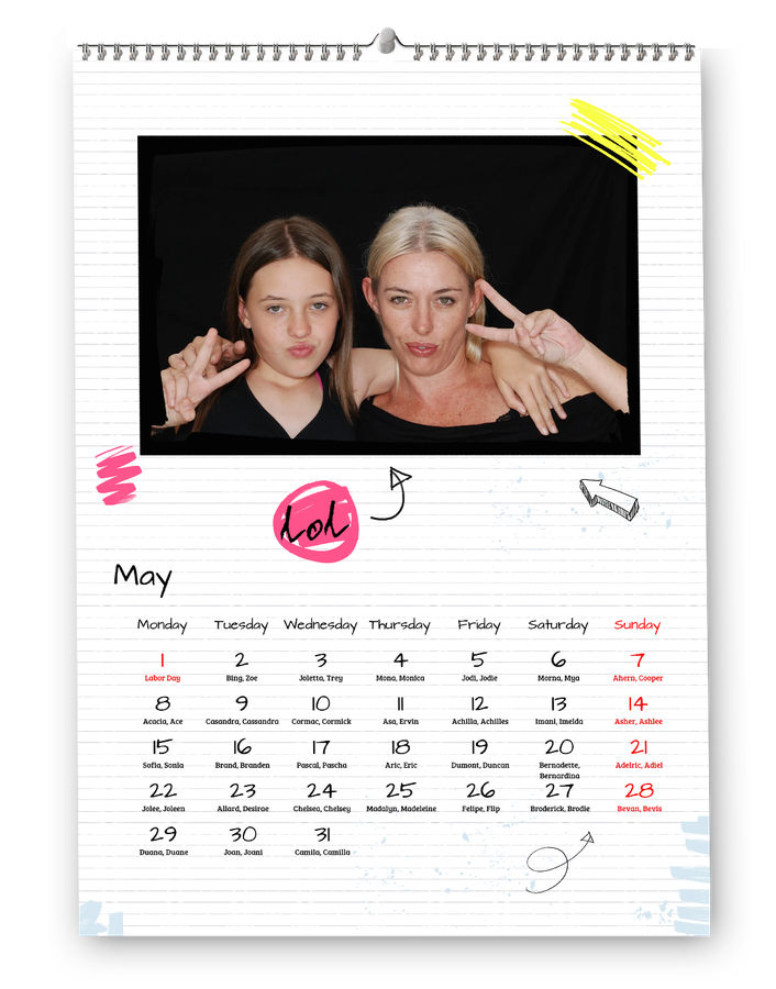Hozd létre saját naptárad: adj hozzá születésnapokat, évfordulókat és ünnepeket, kedvenc fotóid, és kezdd a tetszőlegesen választott hónappal. Naptárainkat kiváló minőségű papírra nyomtatjuk, és erős spirálkötéssel vannak ellátva.