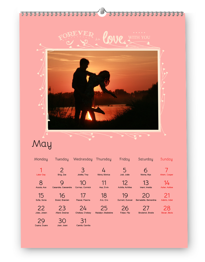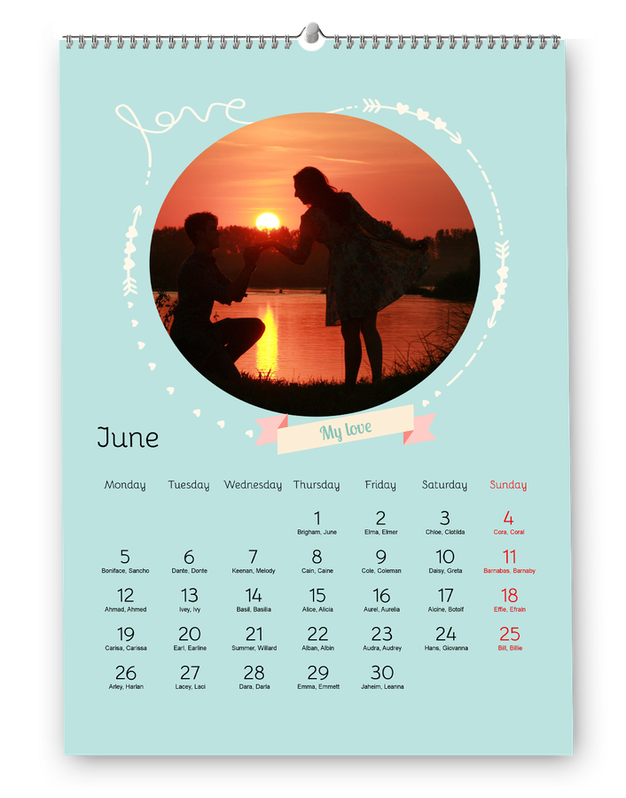 Hozd létre saját naptárad: adj hozzá születésnapokat, évfordulókat és ünnepeket, kedvenc fotóid, és kezdd a tetszőlegesen választott hónappal. Naptárainkat kiváló minőségű papírra nyomtatjuk, és erős spirálkötéssel vannak ellátva.