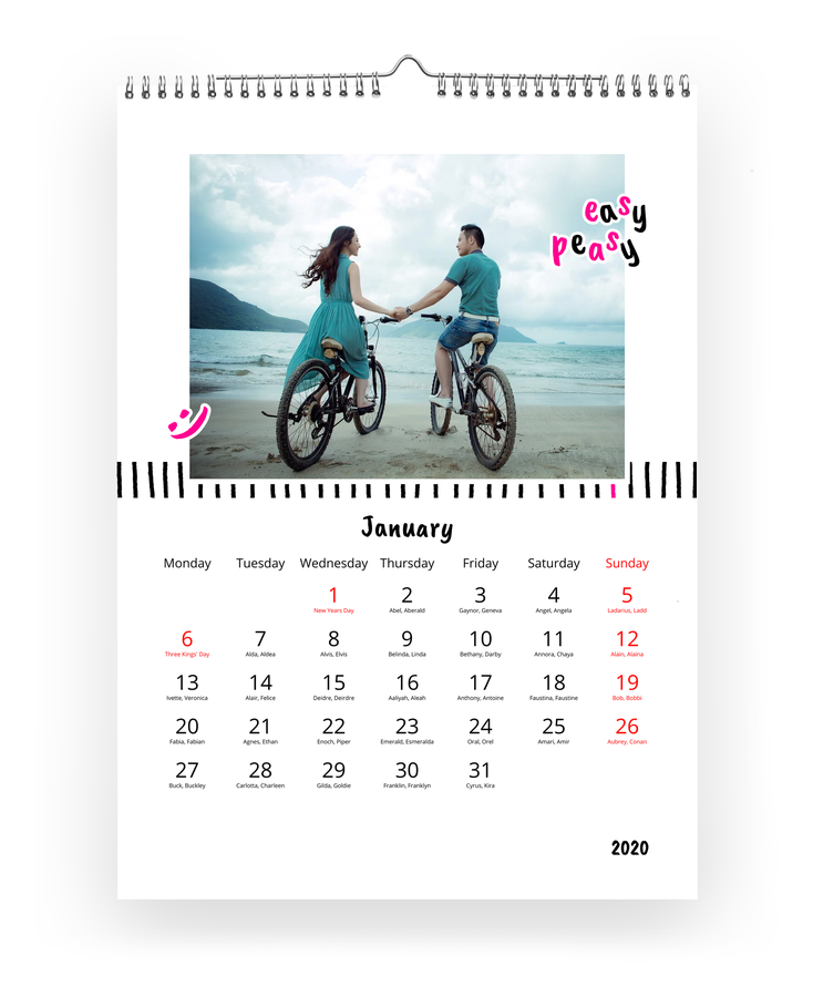 Hozd létre saját naptárad: adj hozzá születésnapokat, évfordulókat és ünnepeket, kedvenc fotóid, és kezdd a tetszőlegesen választott hónappal. Naptárainkat kiváló minőségű papírra nyomtatjuk, és erős spirálkötéssel vannak ellátva.